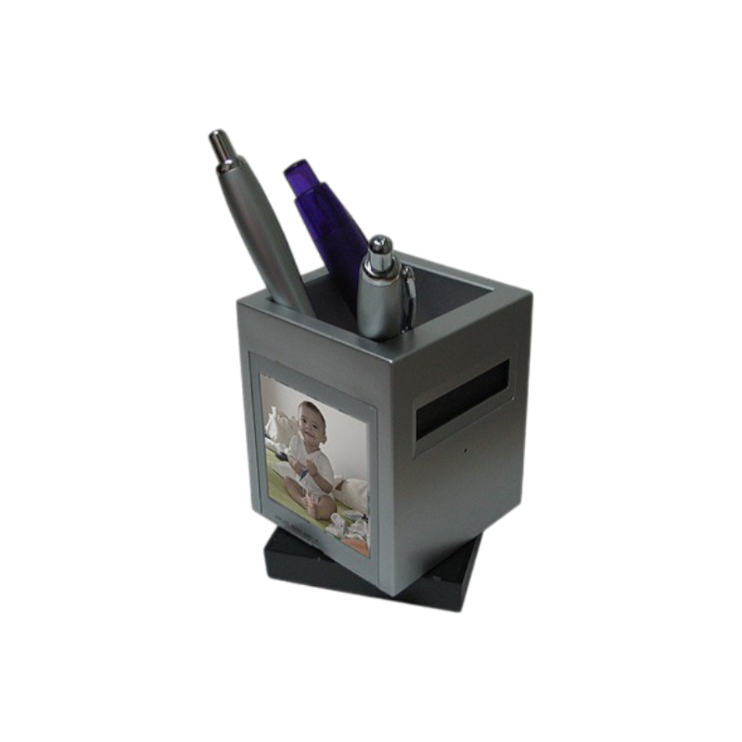 Portalápiz con 3 frentes portarretratos y base giratoria