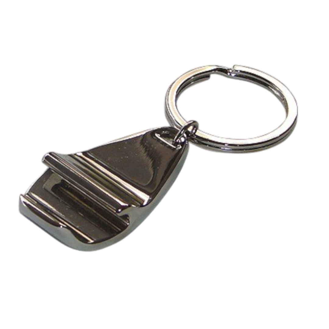 Llavero destapador con estuche Material: metal. Dimensiones: 5 cm de largo, 3 cm de ancho.