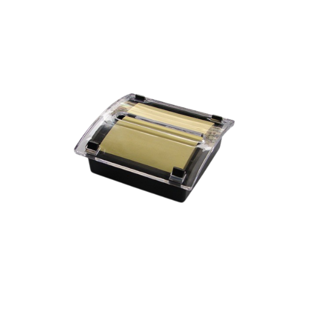 Descripción: Dispensador de memos con 50 hojas adhesivas, base negra y tapa cristal.
