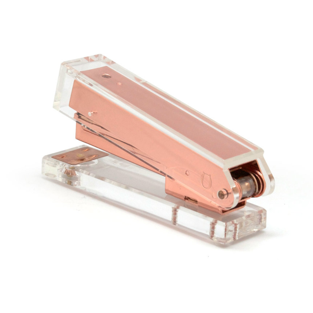 12,8 x 6 x 3,1 cm. Acrílico y metal. Abrochadora de escritorio que combina diseño y funcionalidad para el día a día. Para broches tamaño 21/6. Presentación en caja de regalo.