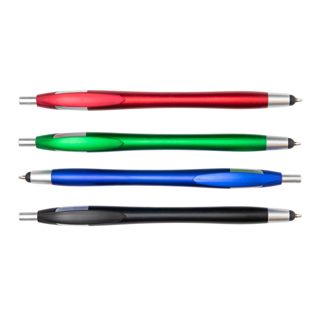 Plástico metalizado con detalles plateados y puntera touch negra. Tinta negra, punta redonda, grosor 1.0MM