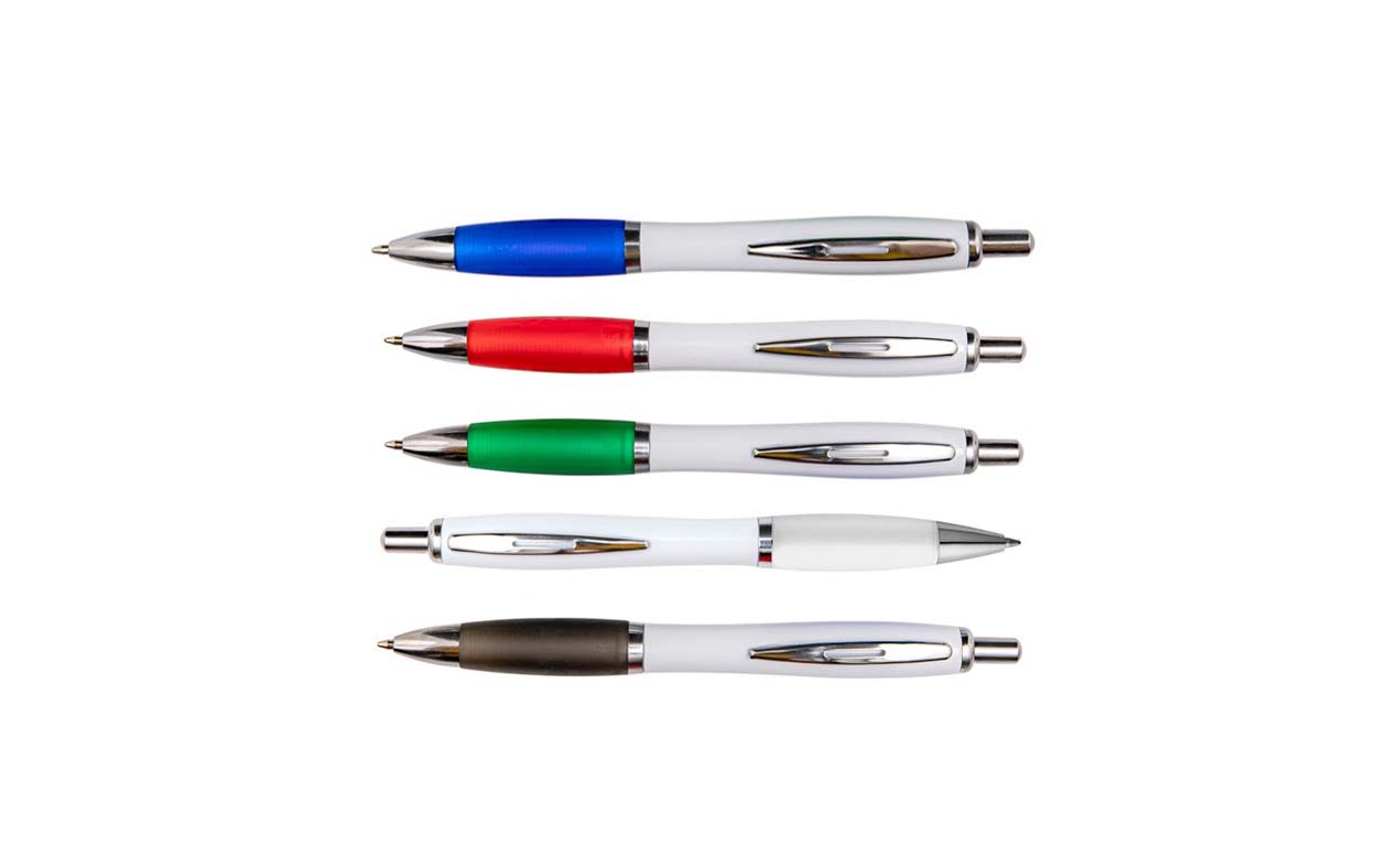 Bolígrafo plástico retráctil con grip de silicona en variedad de colores y clip metálico
