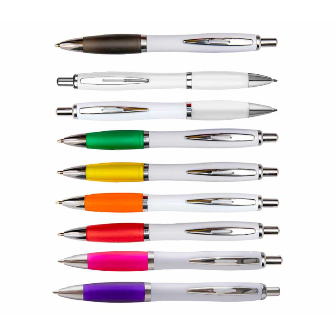 Bolígrafo plástico retráctil con grip de silicona en variedad de colores y clip metálico