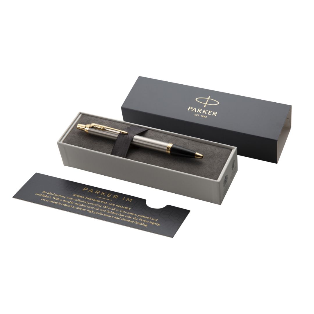 Bolígrafo de laca negra, cromado y punta media. Este modelo es sofisticado y de un notable diseño Acabado de impresión láser en tono cobrizo/dorado.