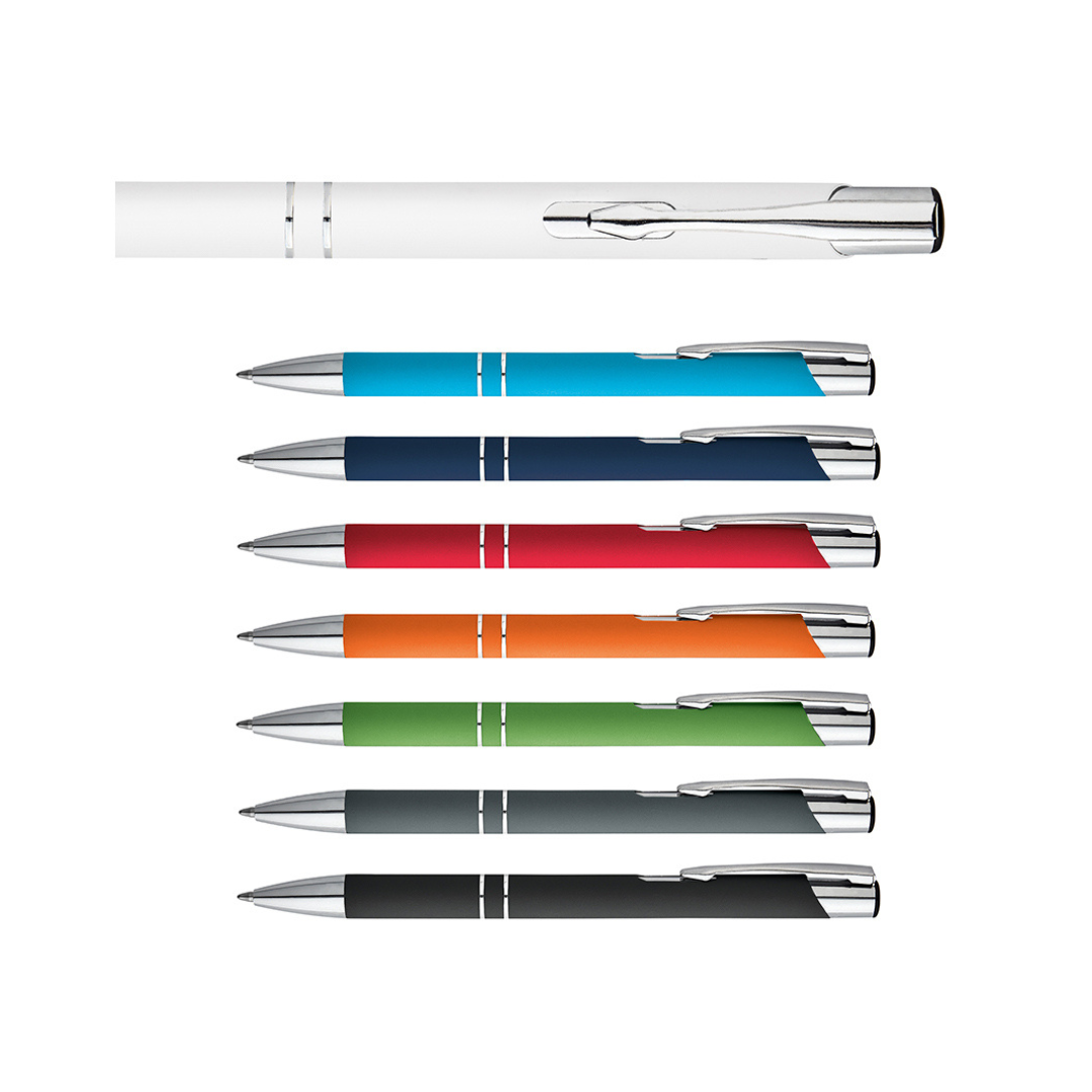 Bolígrafo retráctil con clip metálico. Material de aluminio con acabado en goma (rubber). Tinta de color negro. Medidas: ø 1 x 13,7 cm