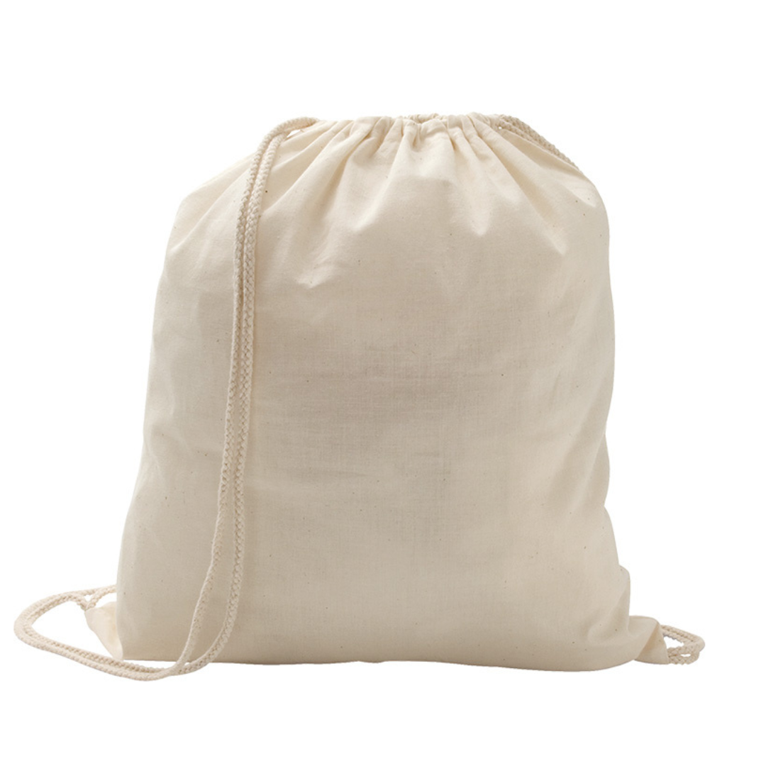 Bolsa tipo mochila con cordón de cierre 100% algodón (100 g/m²).