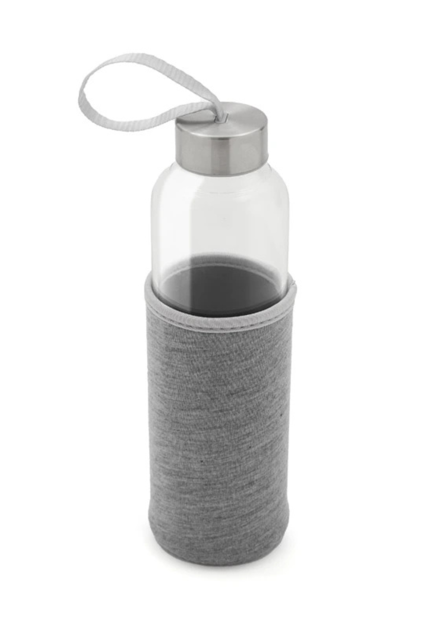 Botella fabricada en vidrio borosilicato, un material resistente y duradero. Cuenta con una funda protectora de neopreno brindando un diseño práctico que protege contra golpes. Su tapa a rosca incluye una cinta integrada, ideal para un transporte cómodo y seguro.