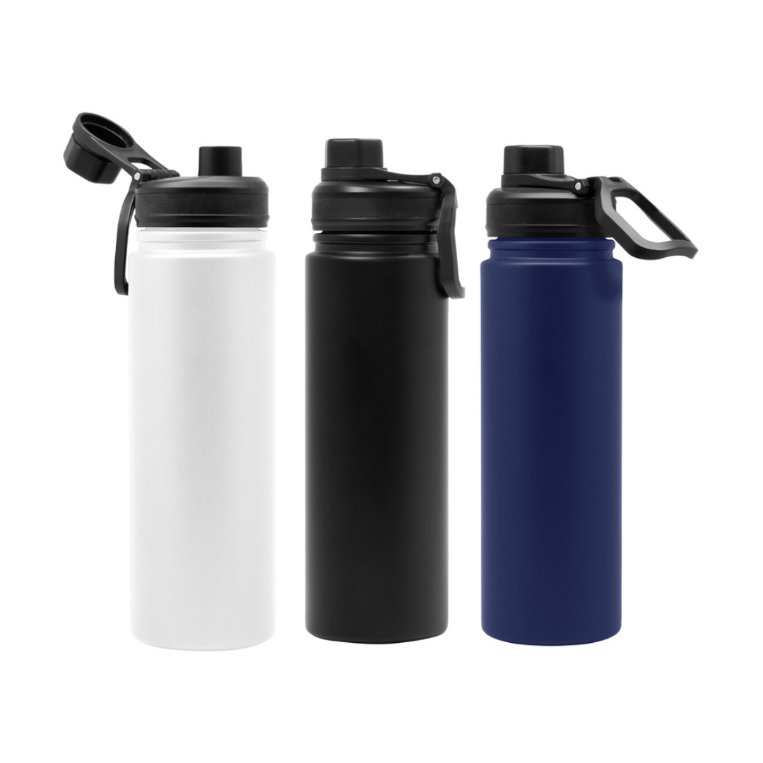 Mantén tu bebida en la temperatura idealBotella doble pared, sellada al vacío. Interior en acero 304 y exterior en acero 201. Tapa con anillo de silicona, boquilla con cierre a rosca antiderrame y manija plástica para su agarre. Mantiene hasta 12 hs la temperatura de las bebidas calientes y 24 hs de las bebidas frías. Medidas: Ø 7,5 x 26 cm.