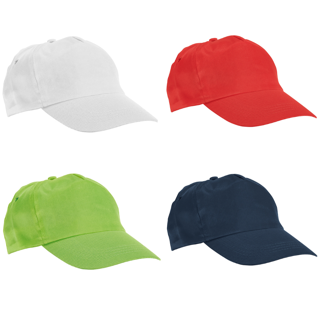 Gorro infantil de poliéster con cierre de velcro. Cuenta con orificios de ventilación.