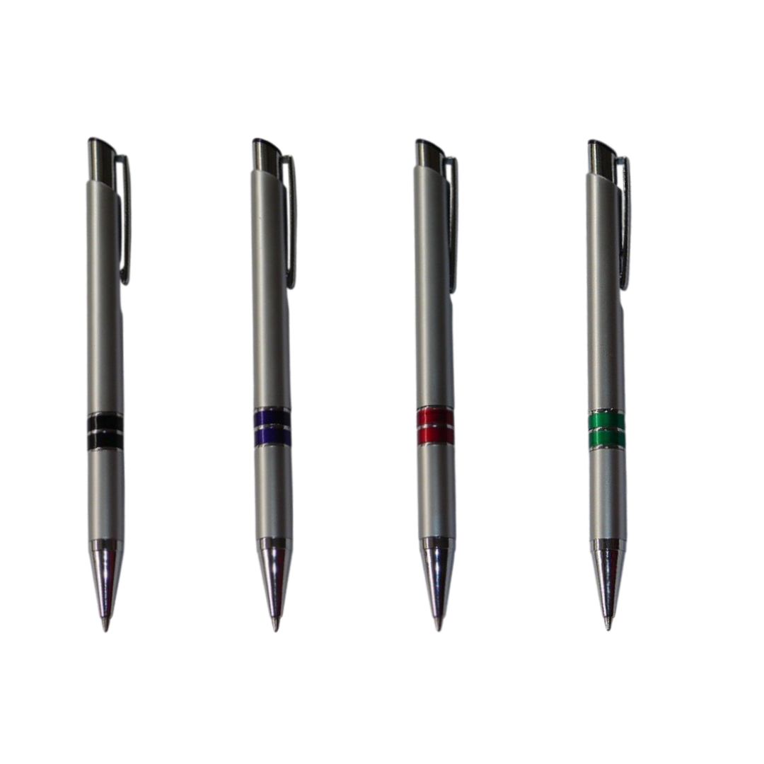 Bolígrafo retractil 3 aros cuerpo silver con detalle en color.