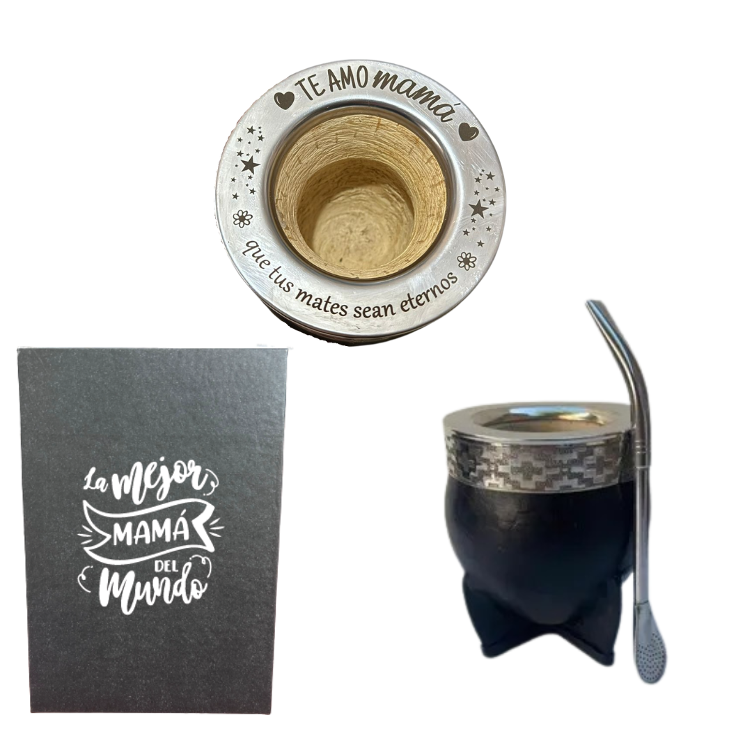Caja de presentación grabada + Mate Imperial Grabado + Bombilla Pico De Loro