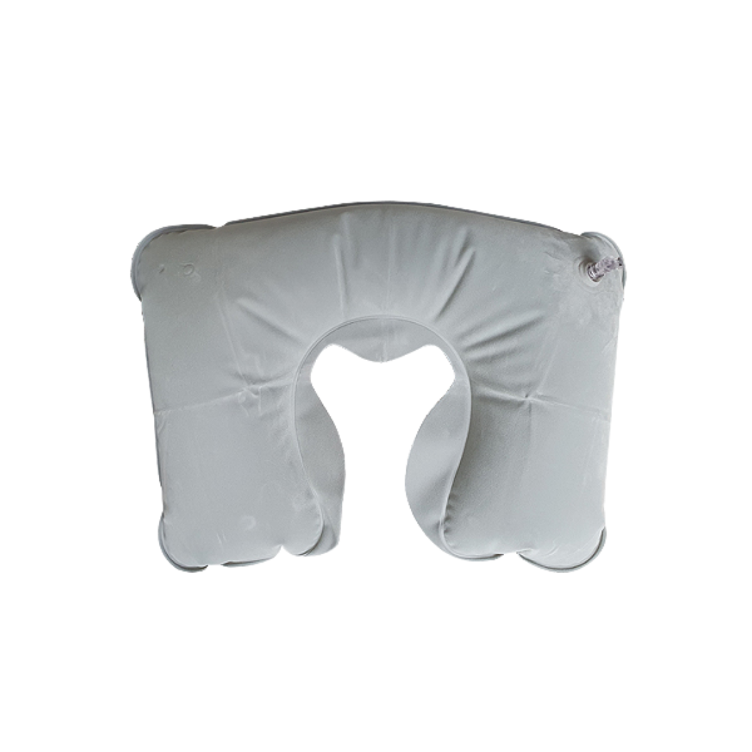 Almohada de viaje inflable en pana sintética, presentado en funda individual.